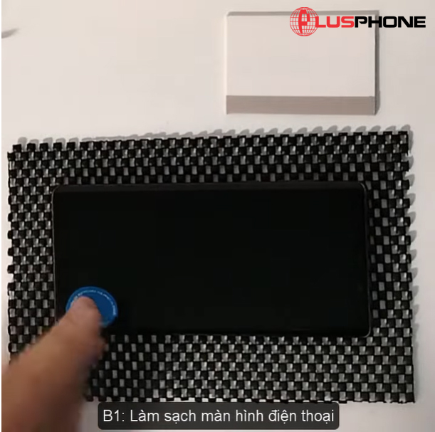 Bước 1 : Làm sạch màn hình điện thoại bằng bộ khăn giấy ướt + khô và giấy lấy bụi mà shop tặng kèm (xem ảnh dưới)