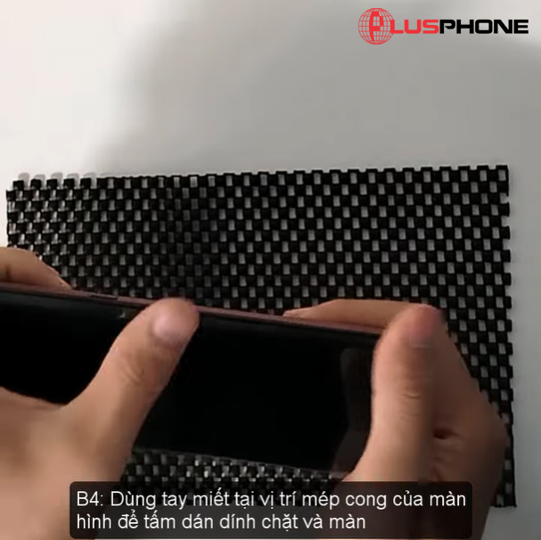 Bước 4: Dùng tay miết vị trí rìa màn hình cong để tấm dán dính chặt vào màn hình